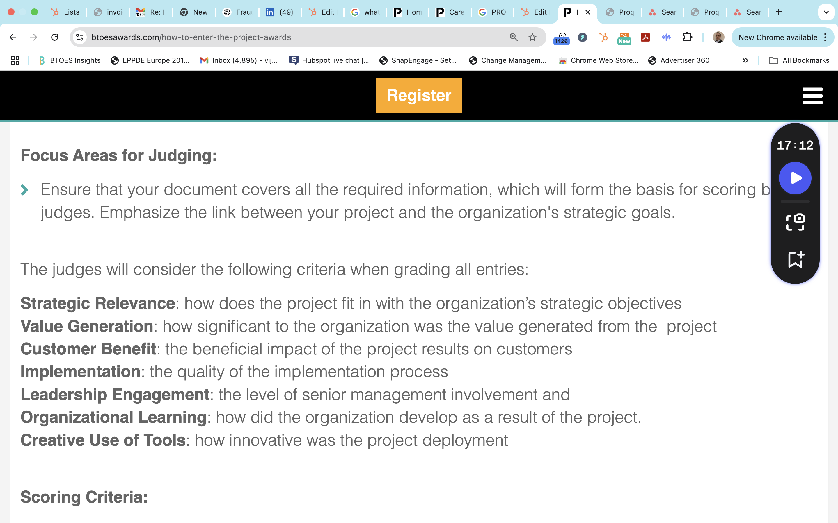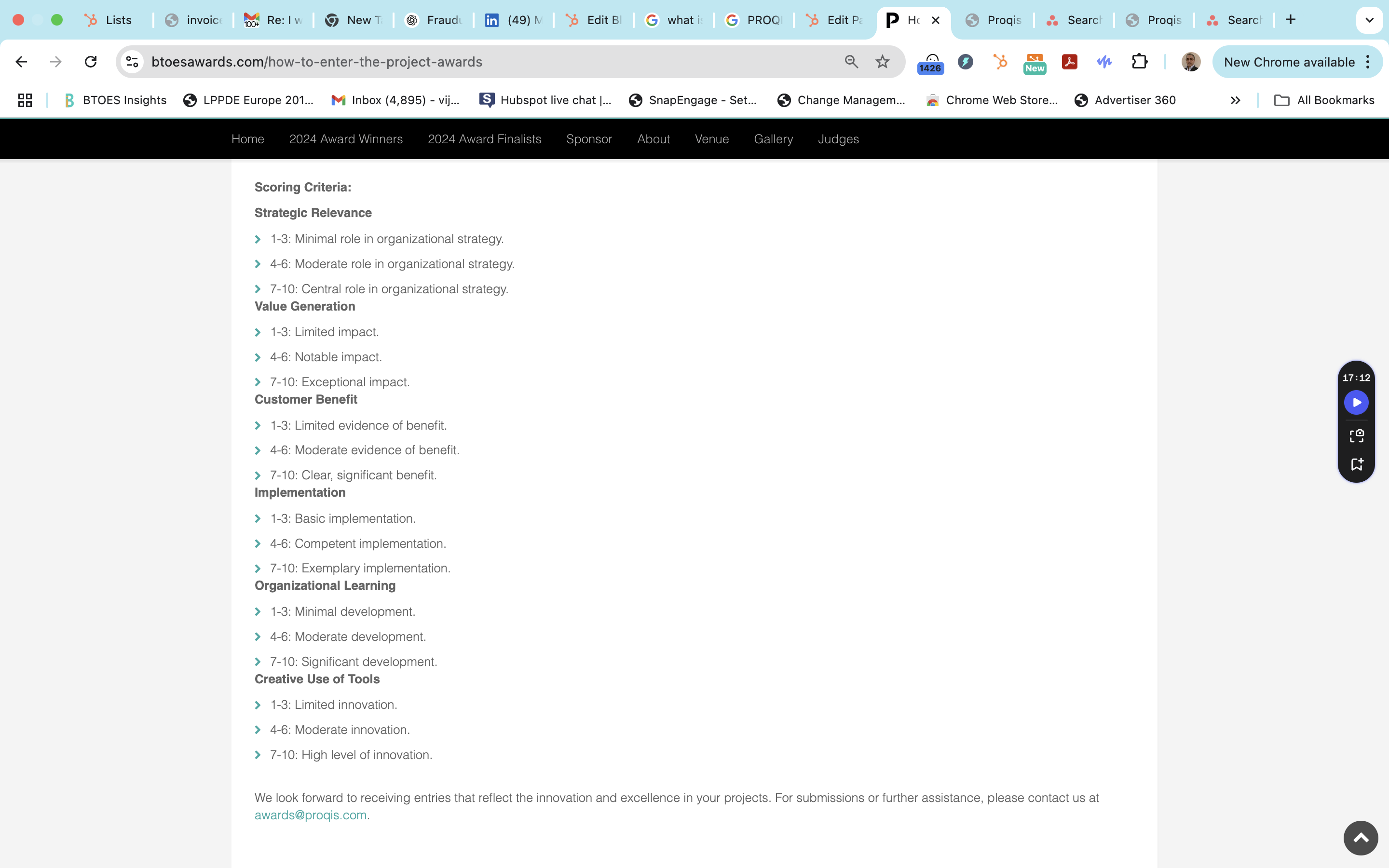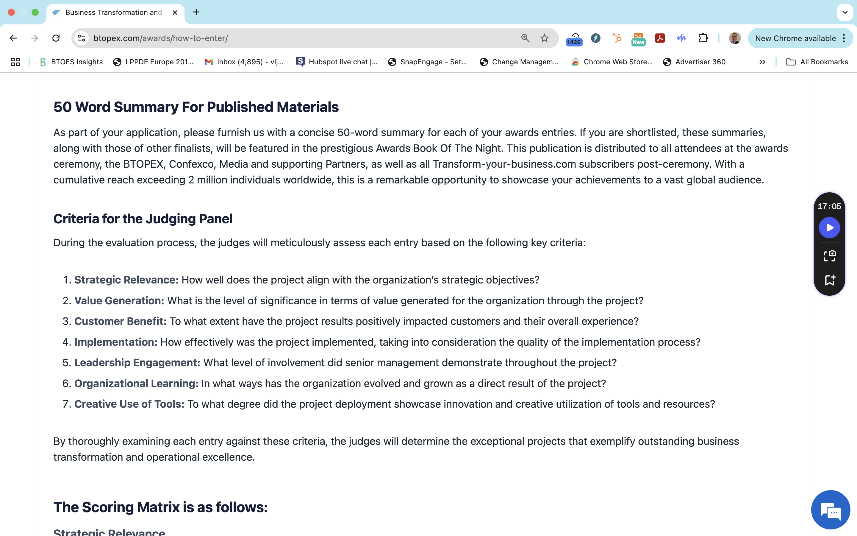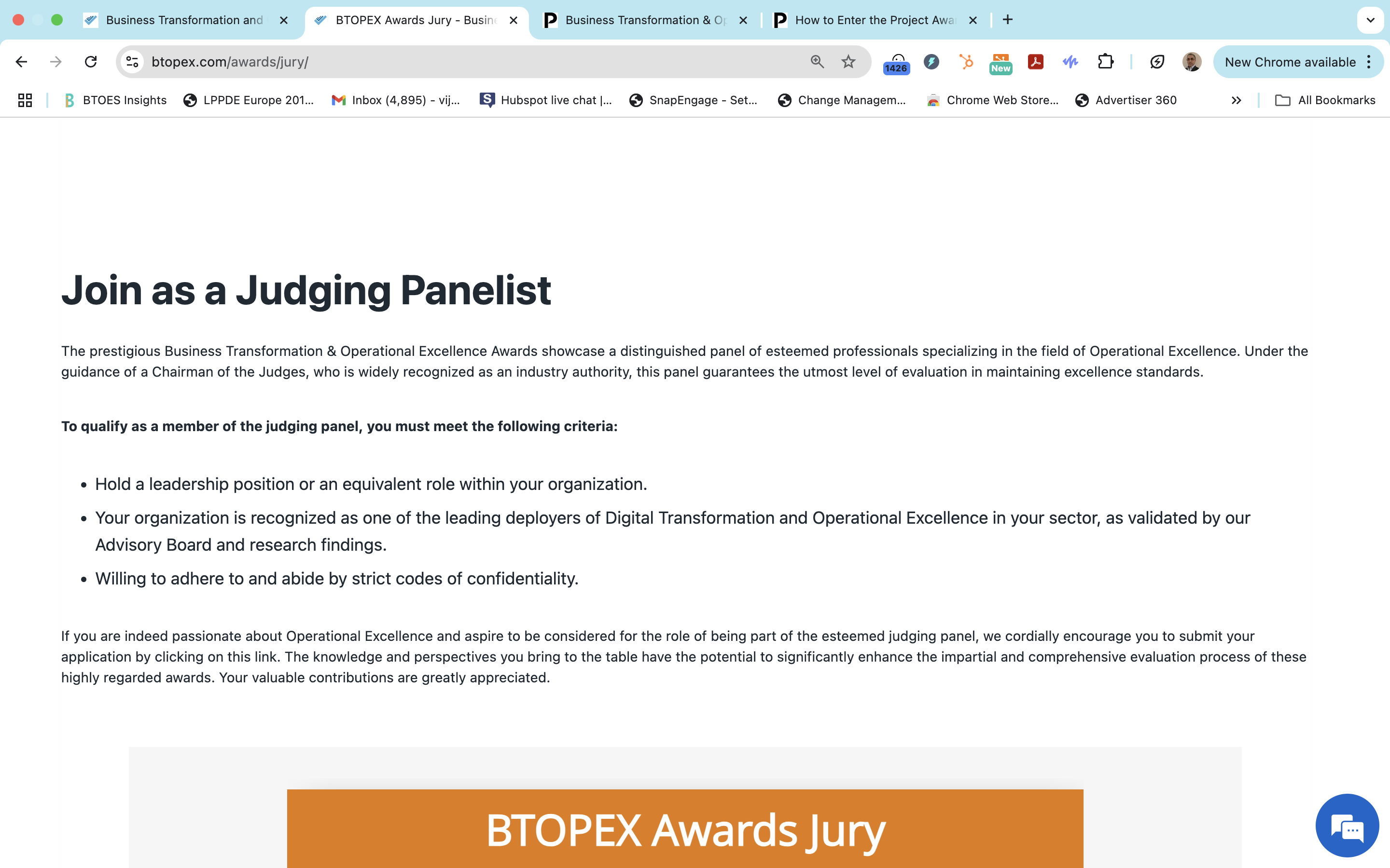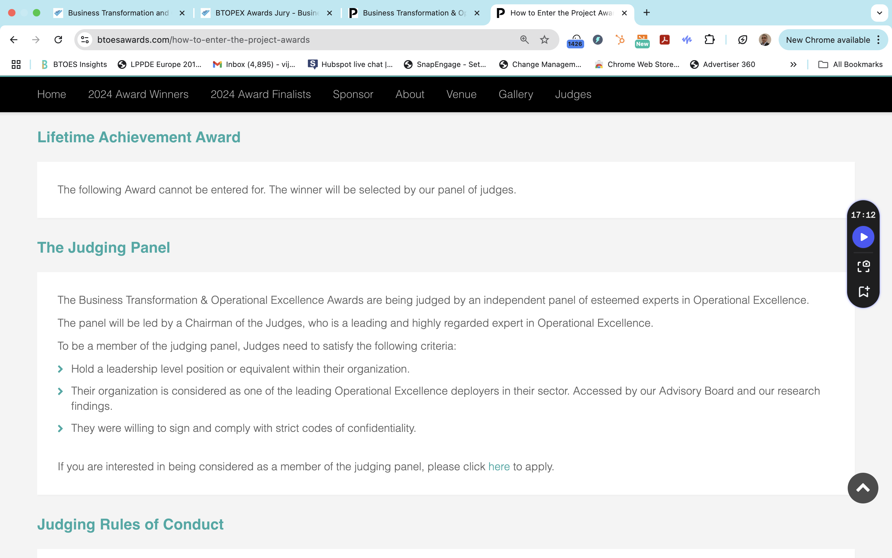 BTOES Awards: Precise copy word for word of our Criteria to join the Judging Panel
