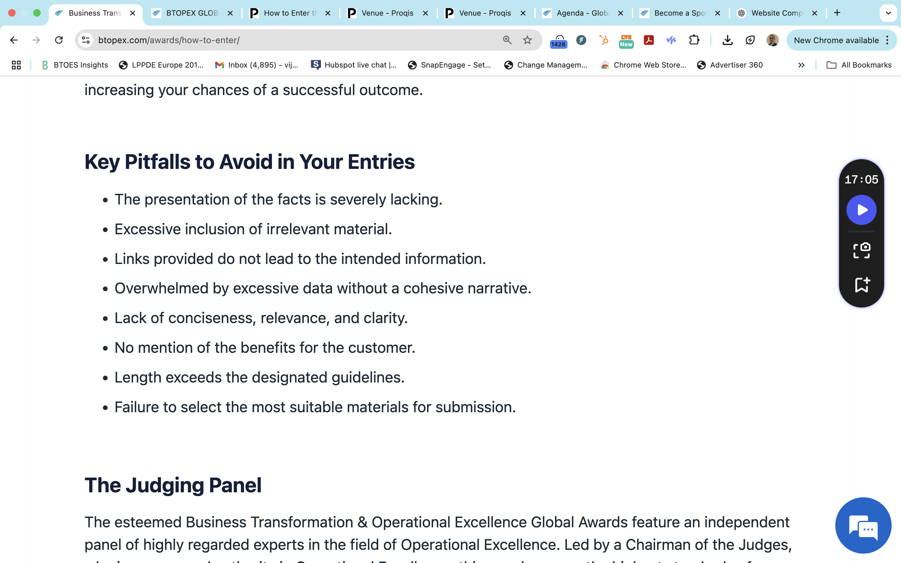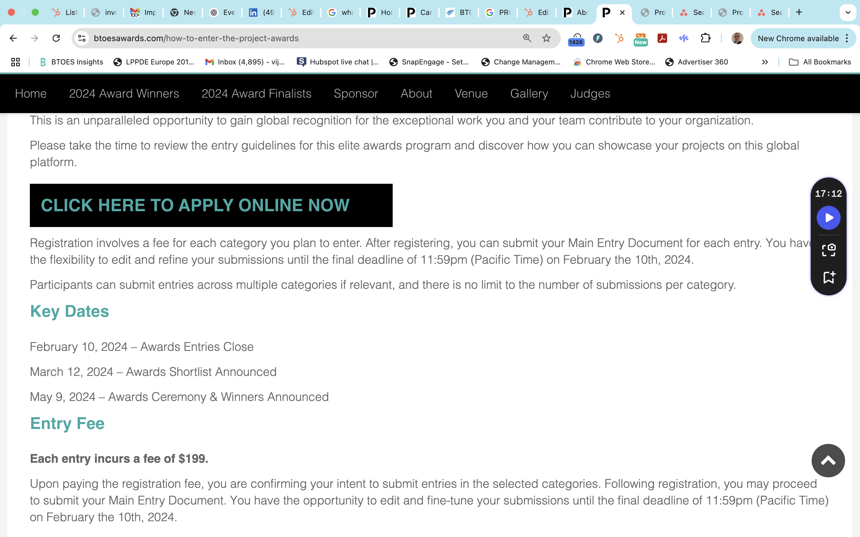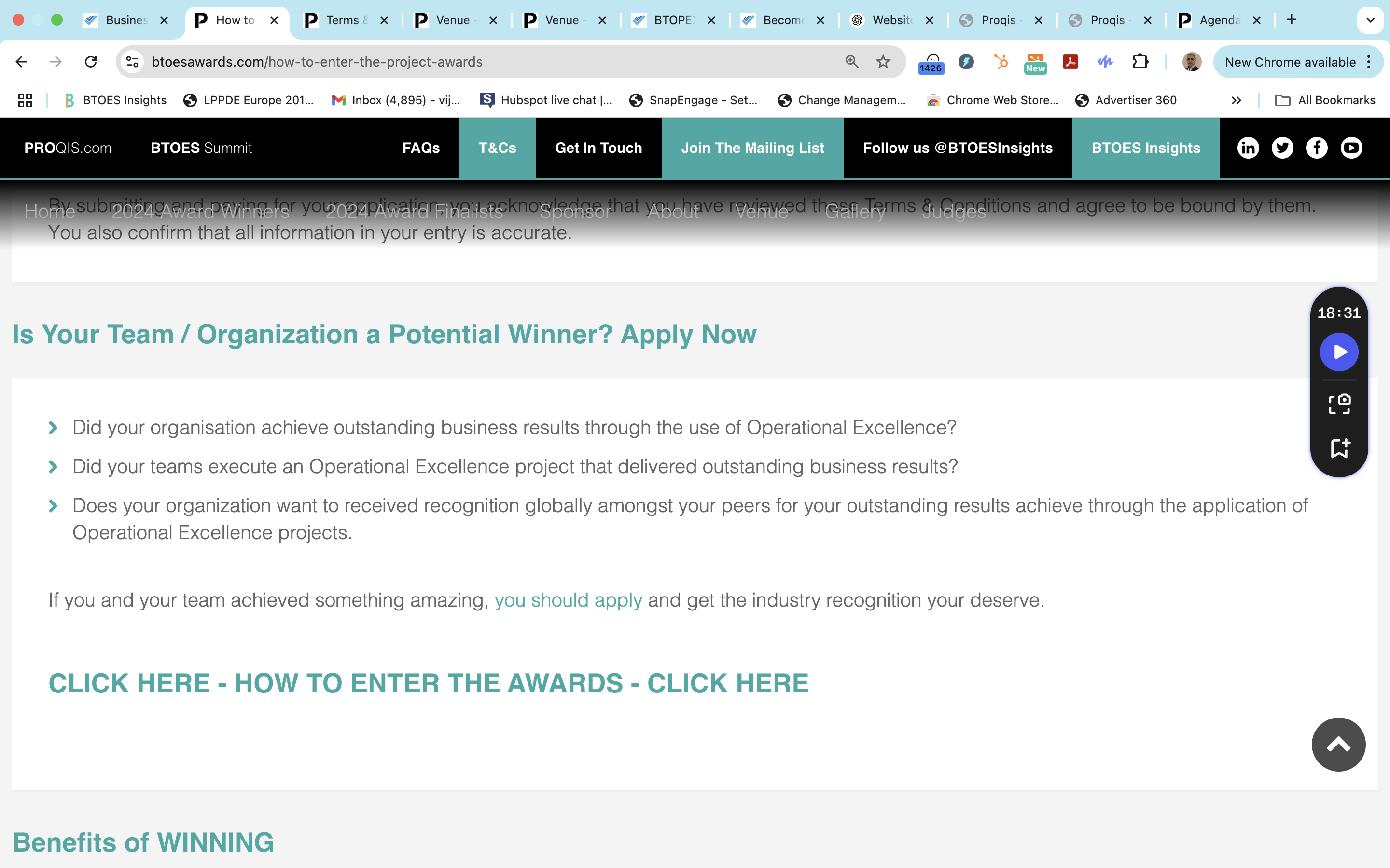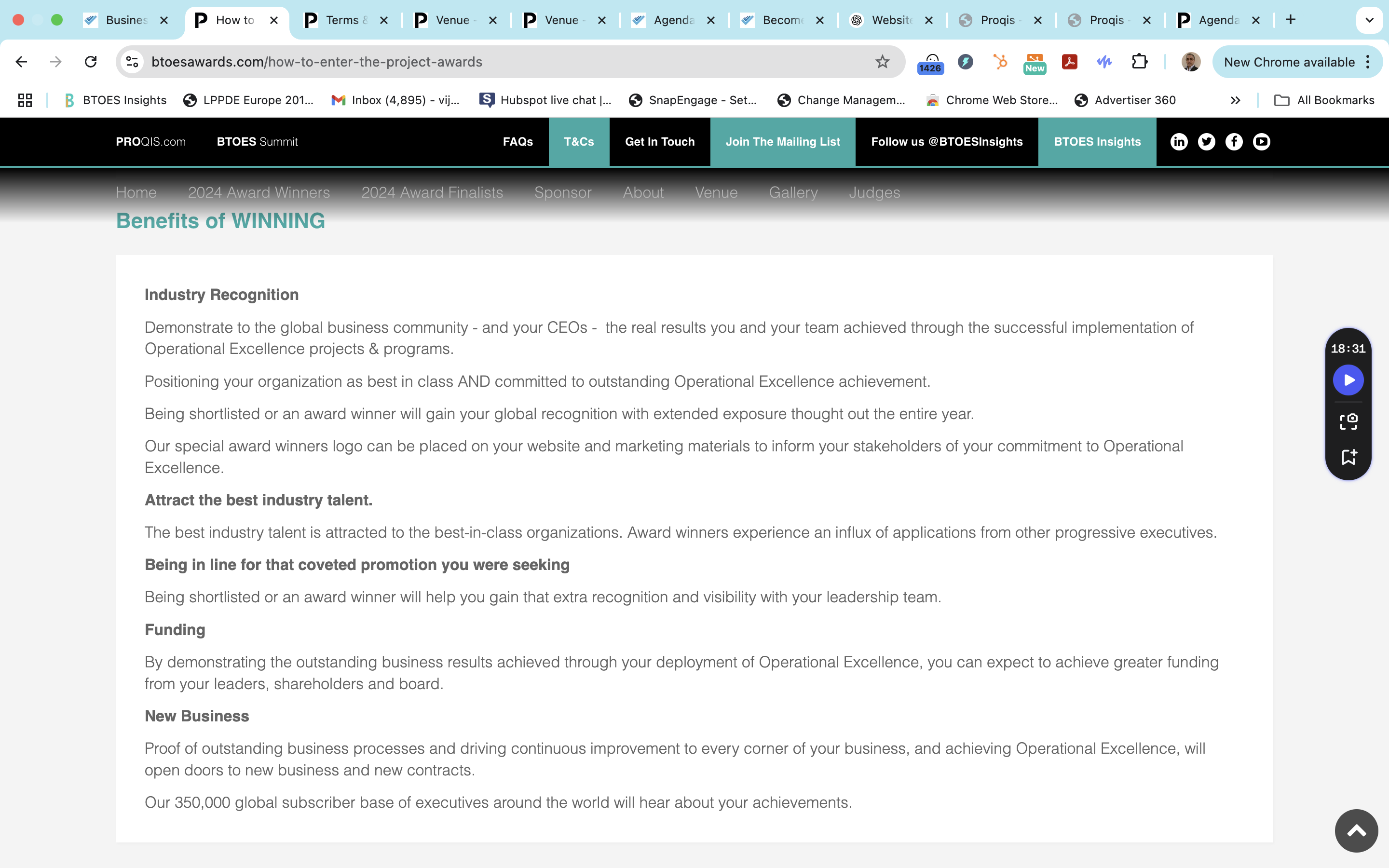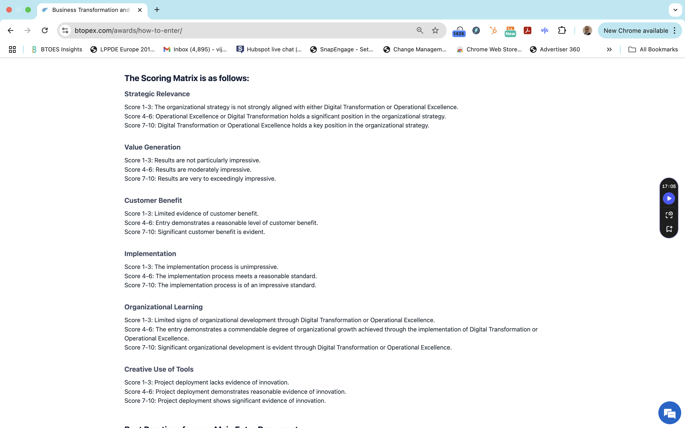 BTOES Awards: Precise copy word for word of our Criteria to join the Judging Panel