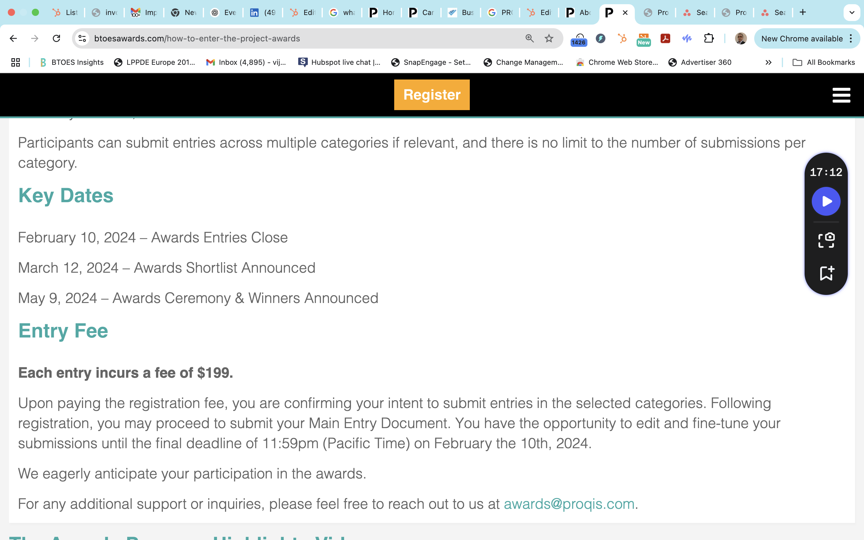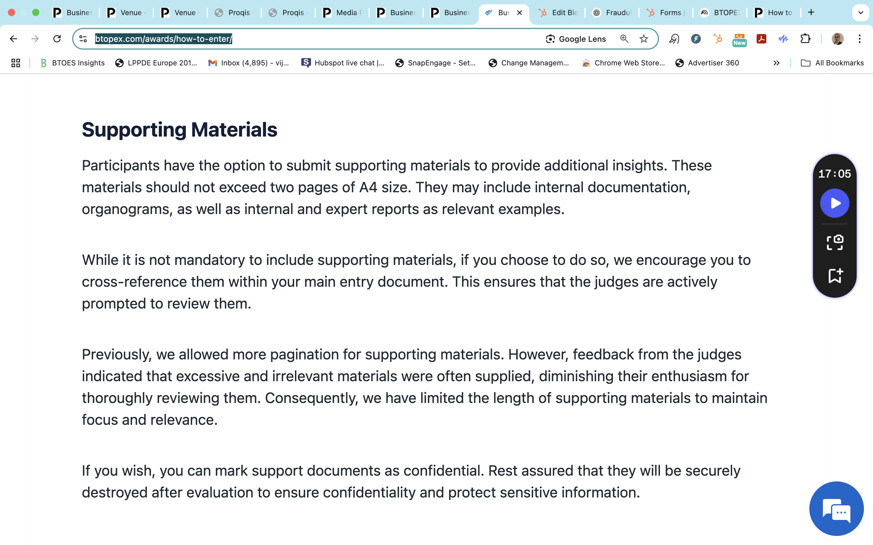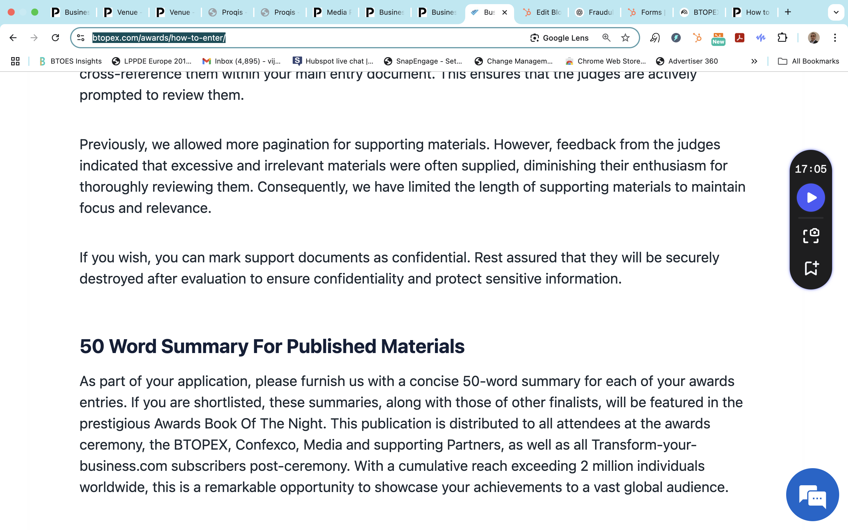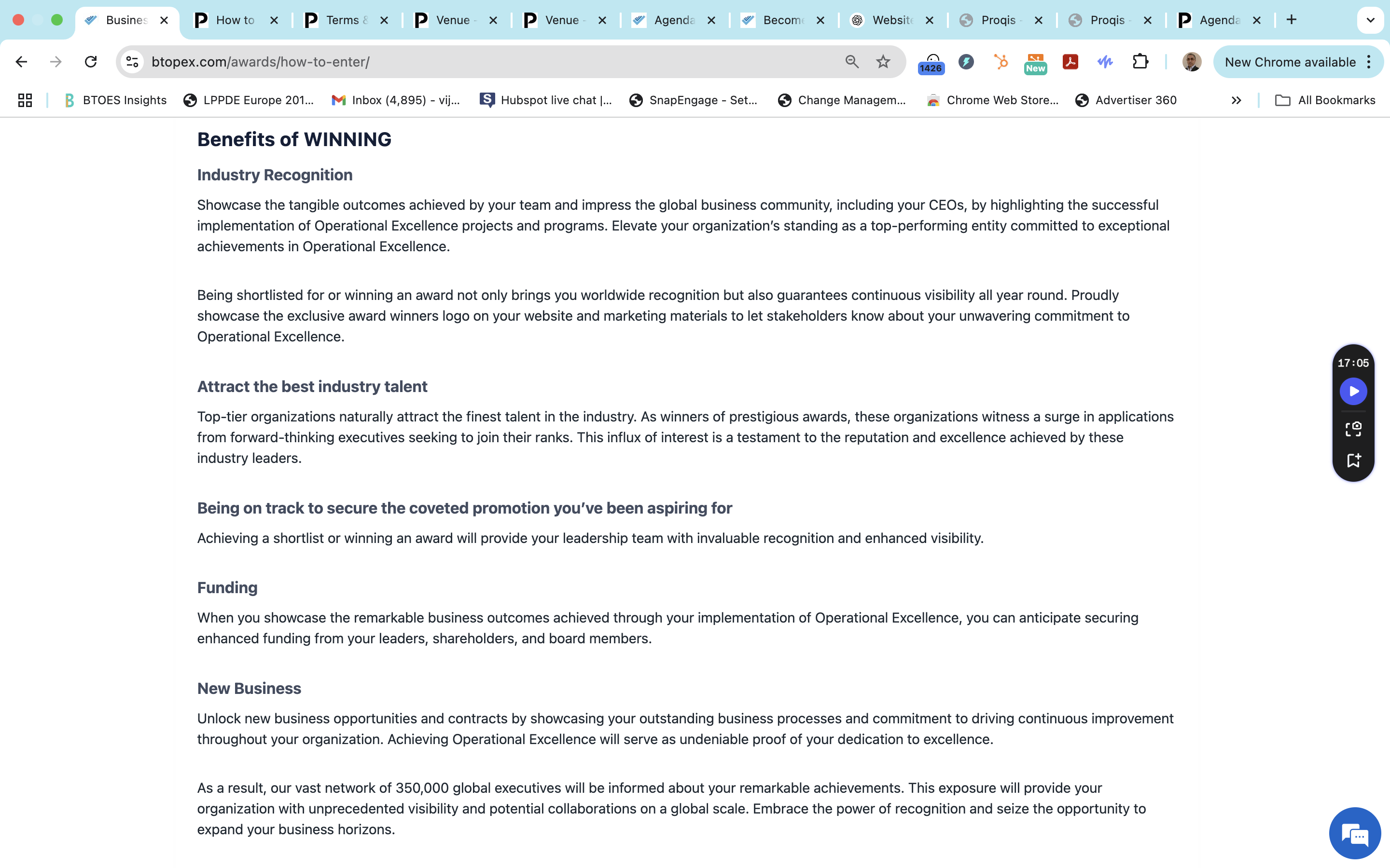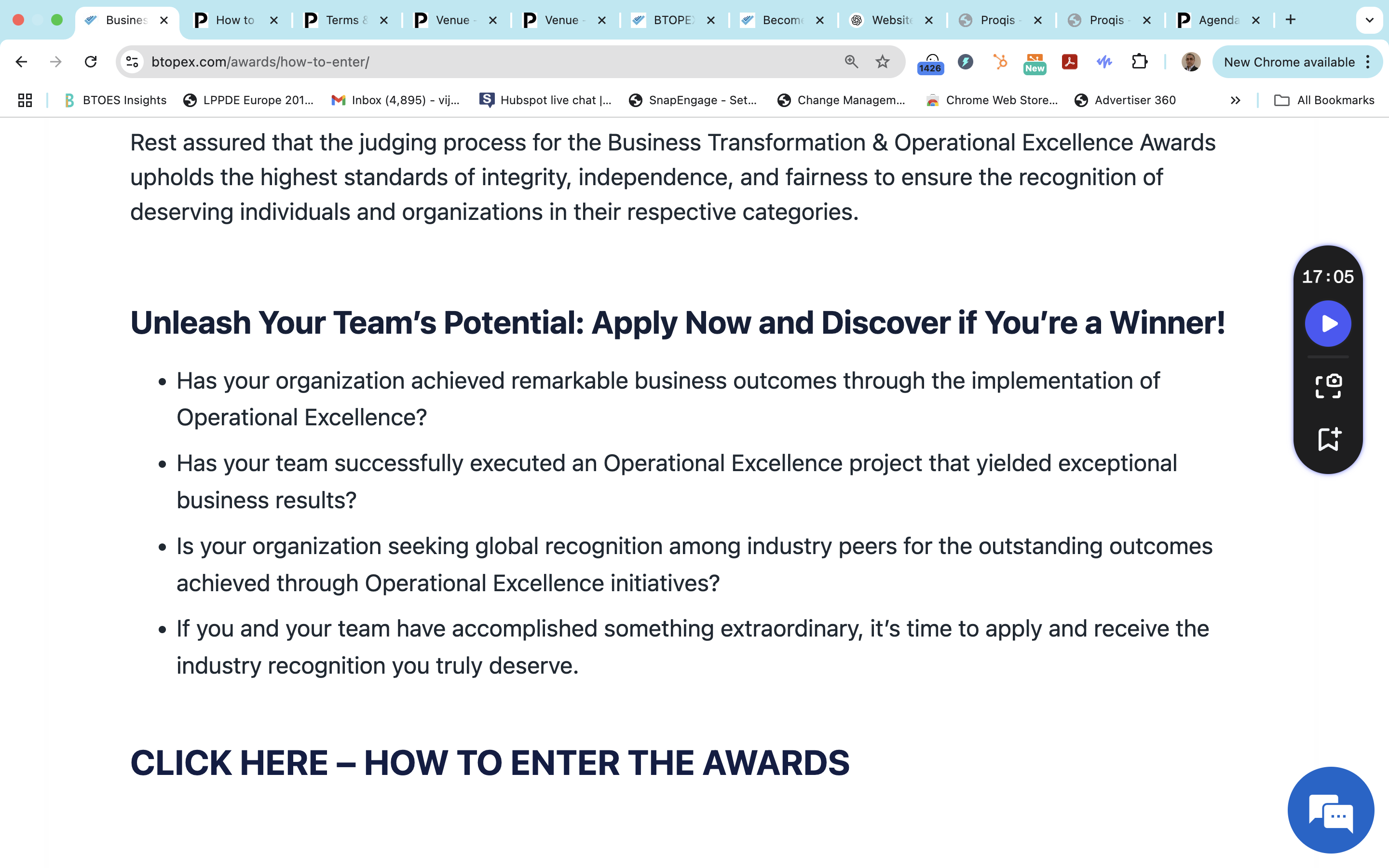 BTOES Awards: Precise copy word for word of our Criteria to join the Judging Panel