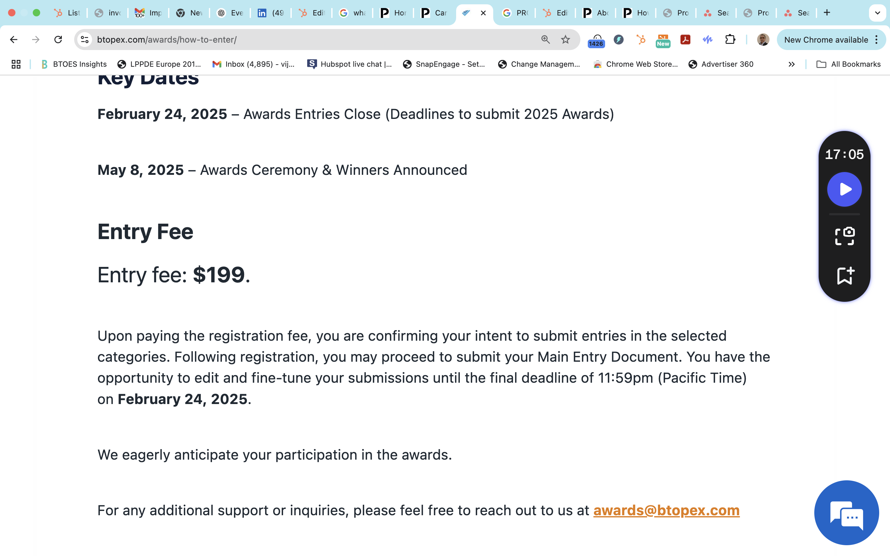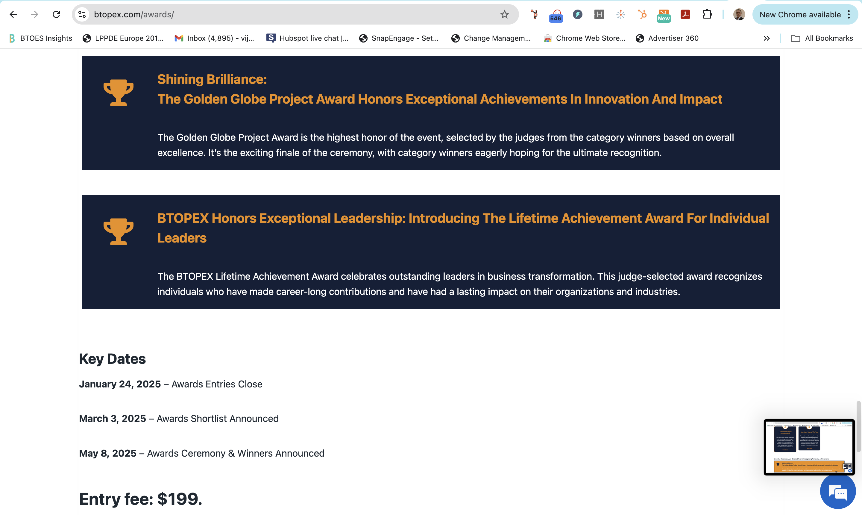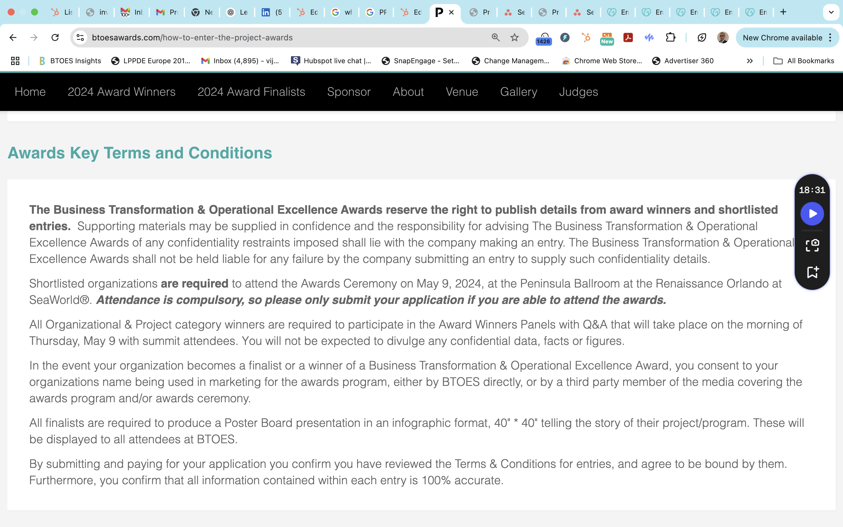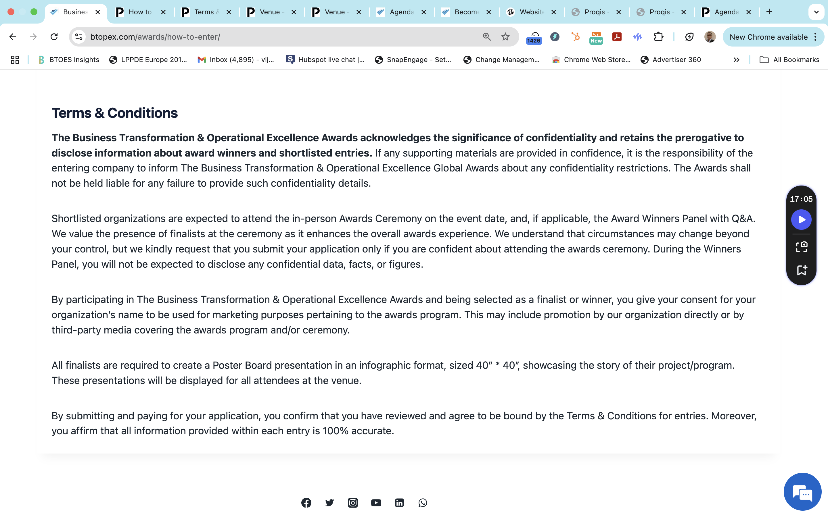 BTOES Awards: Precise copy Terms & Conditions to enter the awards programs.