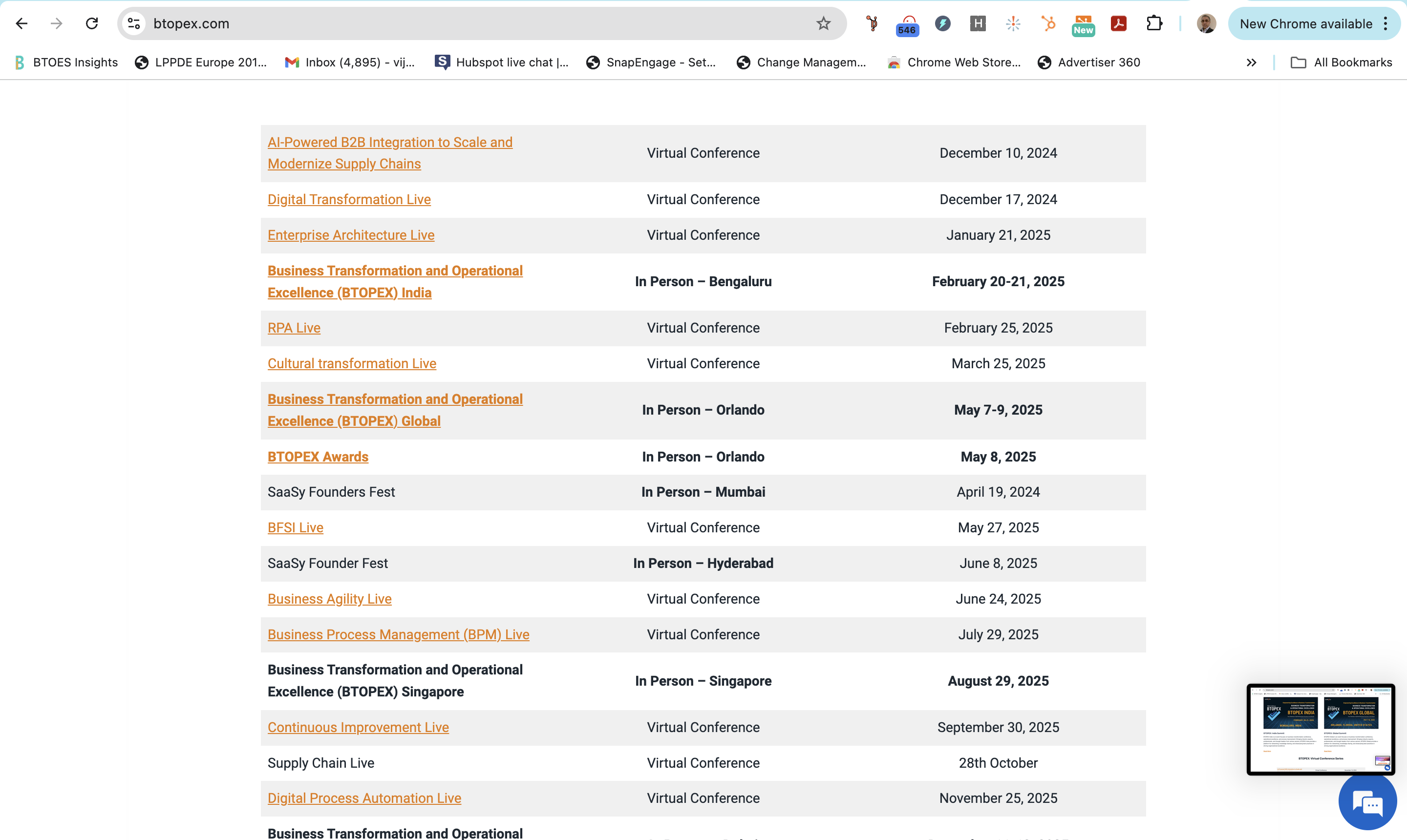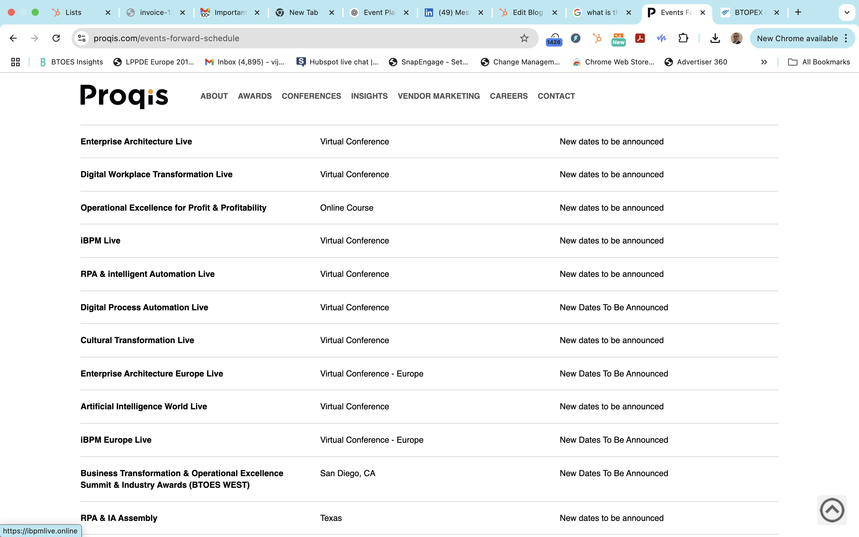 • Event titles like “Enterprise Architecture Live,” “RPA Live,” and “Cultural Transformation Live” lifted almost directly from BTOES.