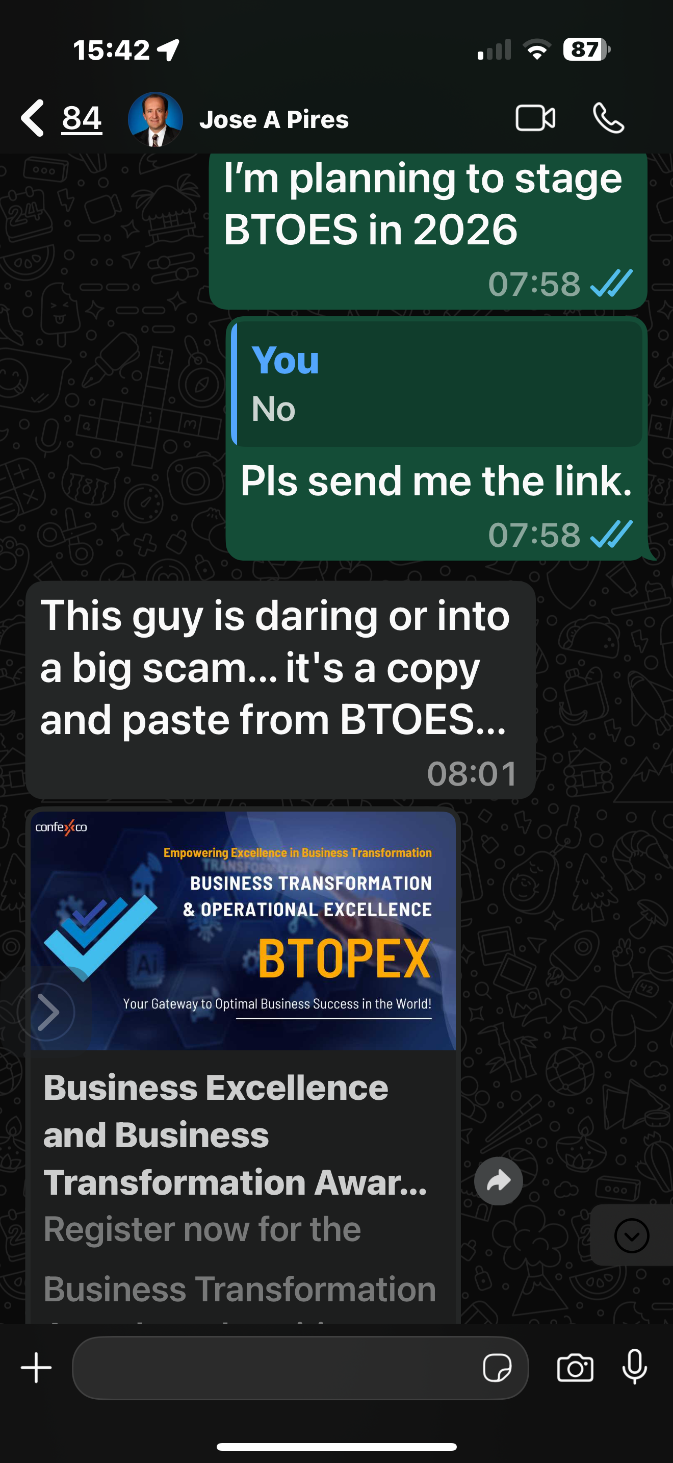 • Even your special branded event concepts like Business Transformation & Operational Excellence (BTOES) have been ripped off and renamed BTOPEX, trying to trade off your brand’s authority and global recognition.