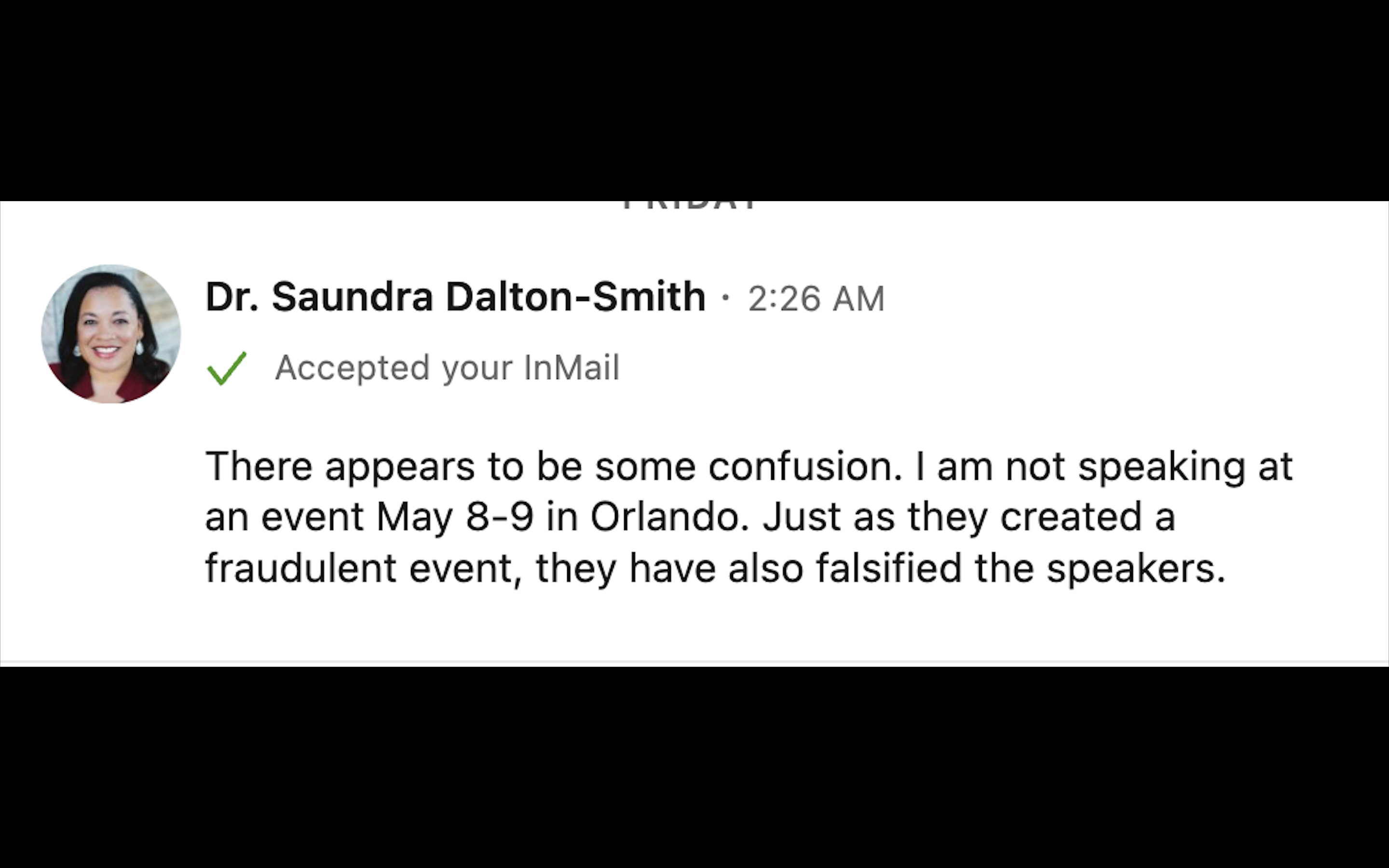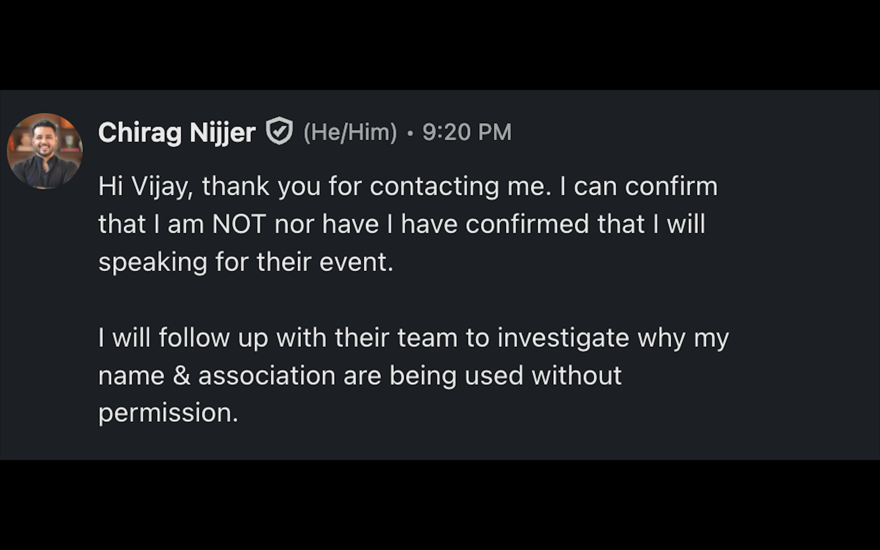 We are issuing this notice to protect speakers, sponsors, participants, and our wider professional community from being misled.